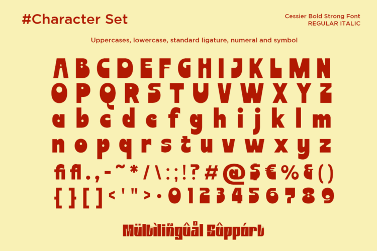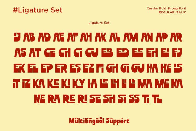 Cessier is a bold and strong display sans serif font designed to make a powerful visual impact. With its thick strokes, rounded geometric shapes, and confident character, this typeface is perfect for posters, logos, headlines, branding, packaging, and advertising designs. Equipped with regular and italic styles plus rich ligatures, Cessier delivers versatility while maintaining a modern, energetic, and eye-catching presence for both digital and print use.