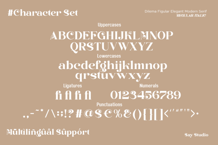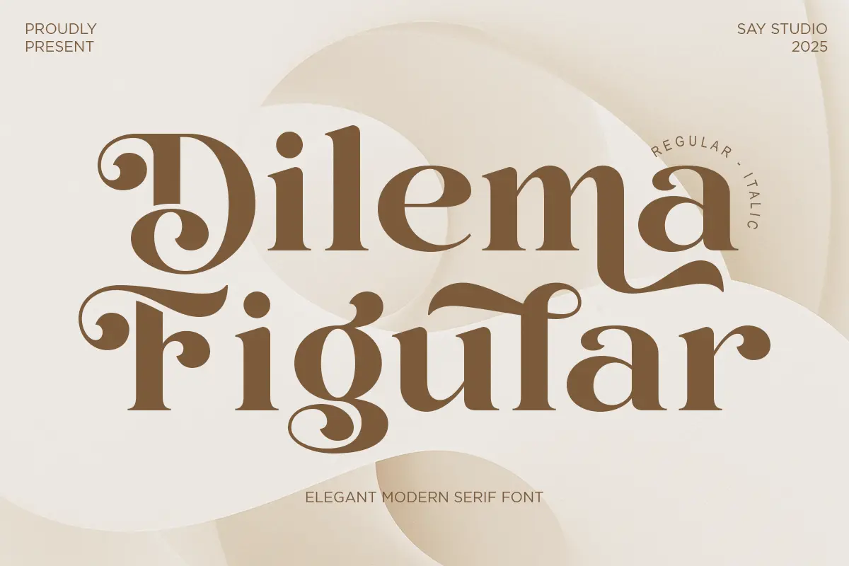 Dilema Figular is an elegant modern serif font that blends refined curves with expressive flourishes. Designed with both Regular and Italic styles, this typeface delivers a sophisticated character ideal for branding, editorial layouts, wedding stationery, boutique packaging, and high-end visual identities. Its graceful serif forms and subtle contrast create a luxurious impression that feels timeless yet contemporary. Perfect for designers who want to add a romantic, stylish, and premium aesthetic to their creative projects.