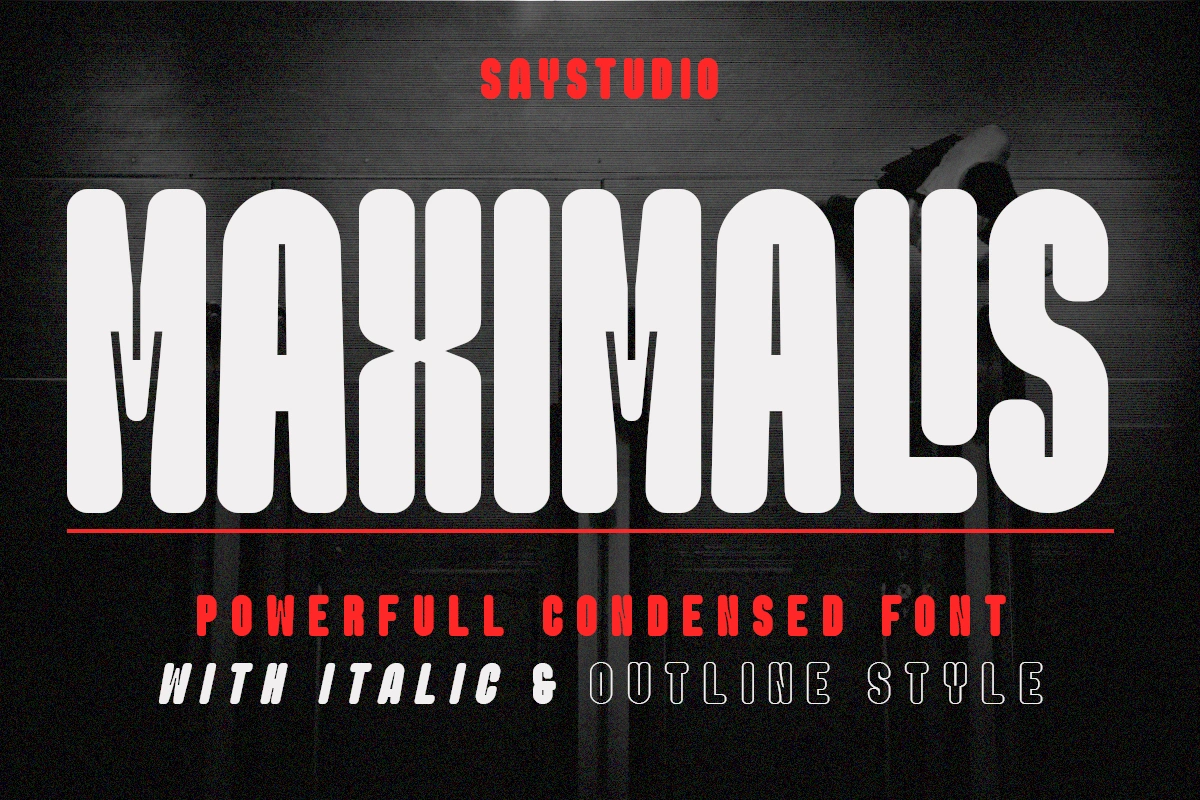 Maximalis is a condensed sans-serif typeface created for use in bold headlines with distinctive shapes that make it a display font for easy reading in contemporary use. Available in regular, condensed, outline, and italic styles, the shapes are easy to read and expressive. Its glyph catalog provides an easy-to-compose system for Latin with a tall x-height and tight line spacing.